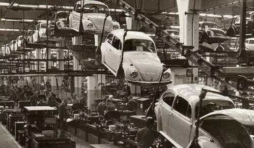 流程化:上图是大众汽车1969年的生产流水线,自动化程度比现今国内很多车厂的自动化程度都高。生产流程化的核心目的就是把生产过程切分成非常细小的片段,每个片段都遵循严格的顺序加工,片段之间用自动化的传动装置连接起来,每个片段简单到不需要人工操作的时候,就被机器取代了。另一个行业的例子,说起软件公司,大家都记得微软之类的美国公司,但是做流程软件最成功的却是德国的SAP,他们把企业(甚至非生产型组织)内部所有流程都固化到软件里面,把企业里面每个 人都通过软件固化到一个功能,最后完成了企业的可靠高效运作,这就是流程化的威力。(我想企业里面用过SAP的ERP系统的人,特别是财务采购之类的肯定特别熟悉)