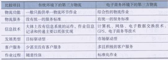 传统环境下第三方物流企业与电子商务环境下第三方物企业流具有一定的区别(具体见表-2)。