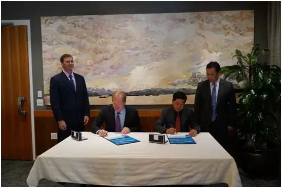 波音总部签字仪式现场(左:Stanly A. Deal;右:喻渭蛟)